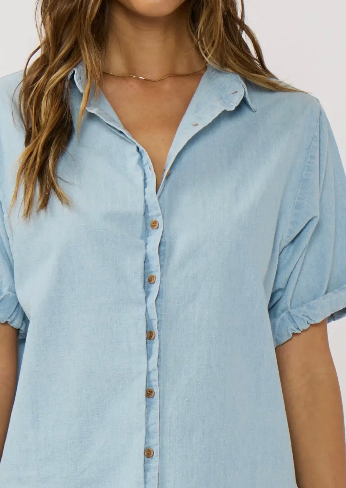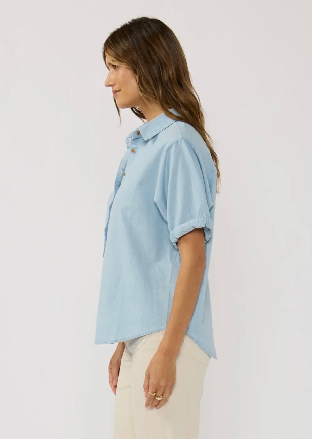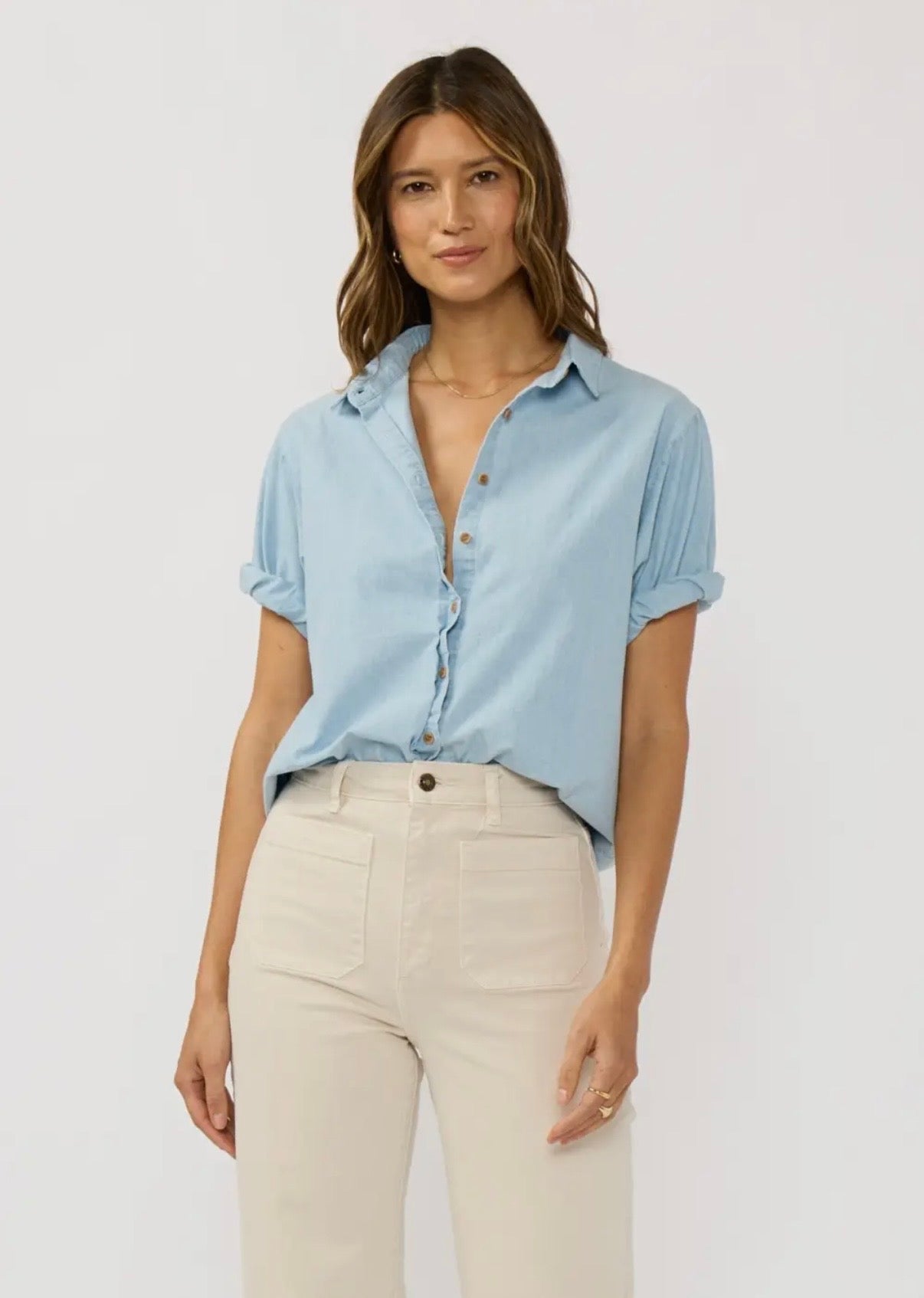 The Lorna Top brings timeless elegance to your everyday wardrobe. Crafted in soft chambray, this button-down style features a classic silhouette with subtle design details that add personality without compromising sophistication. Perfect for layering or wearing solo, it transitions effortlessly from casual weekends to polished workdays. A versatile staple that pairs beautifully with jeans, skirts, or trousers.